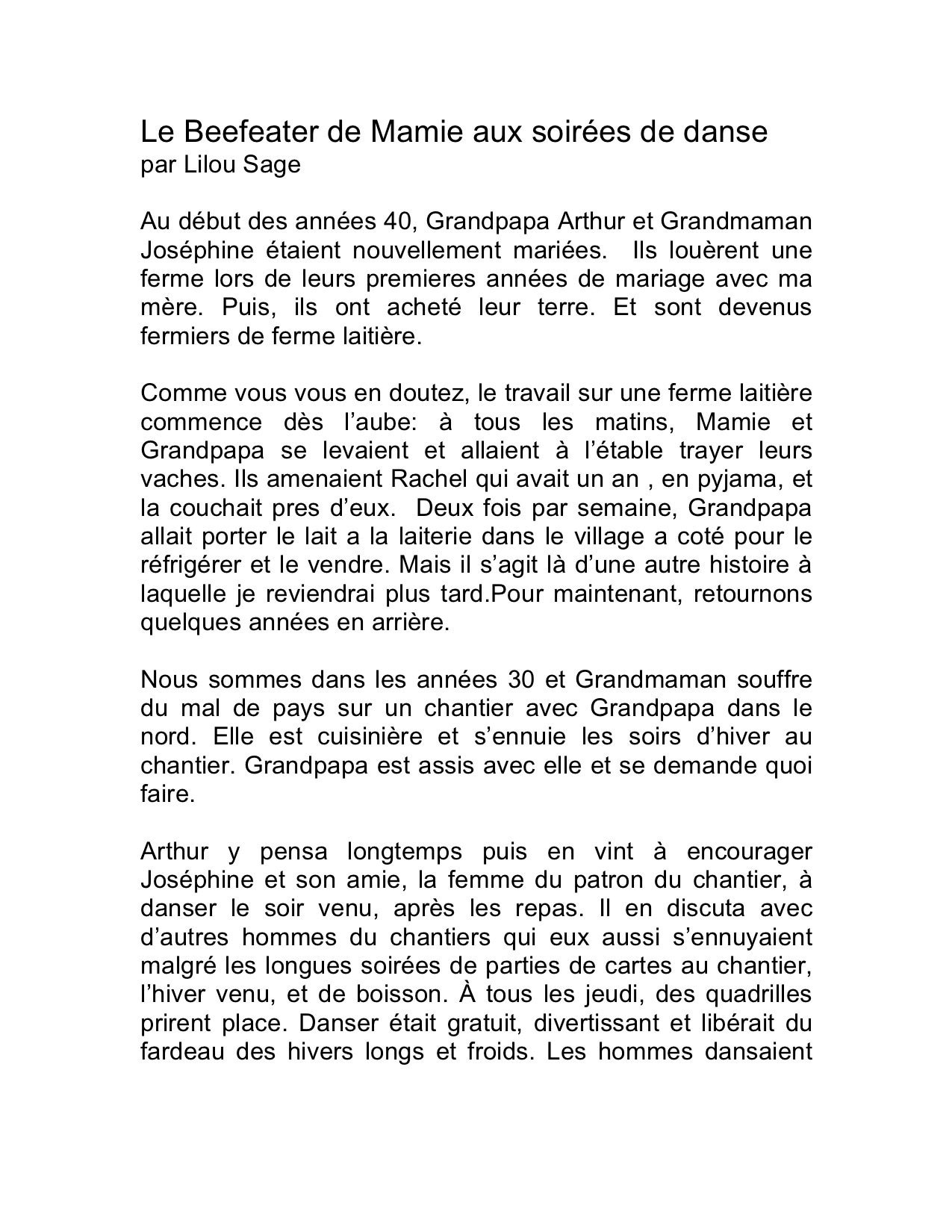 Troisième texte traduit: Le Beefeater de Mamie aux soirées de danse par Lilou Sage (v.f.)