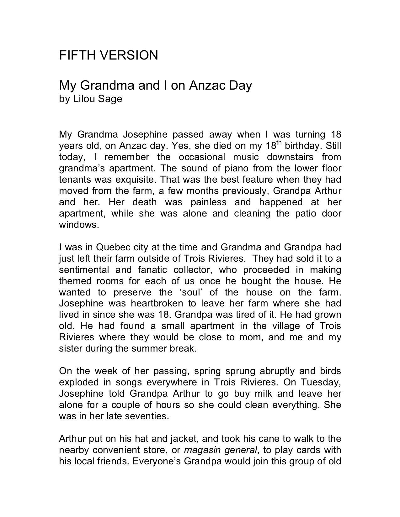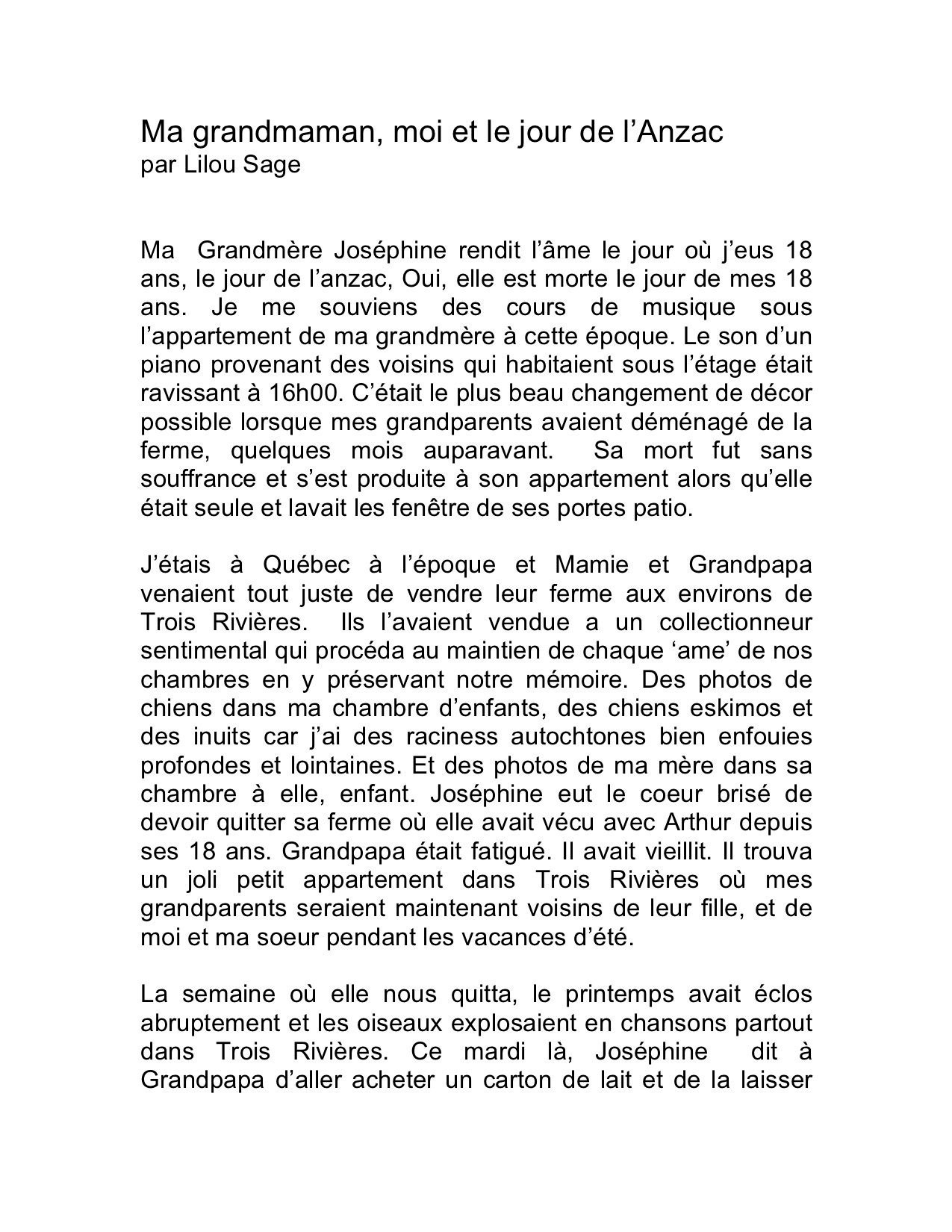 VERSION 1: 'Ma Grandmaman, moi et le jour de l'Anzac' par Lilou Sage (v.f)