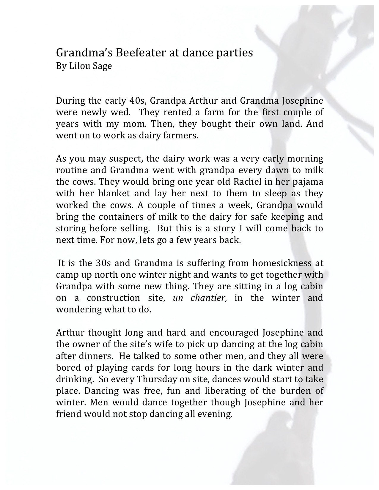 Tonight's piece: Grandma's Beefeater at the dance parties