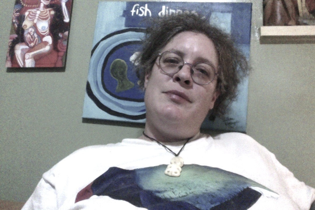 The beautiful t shirt, handpainted with takahe, a NZ bird, is revealed!