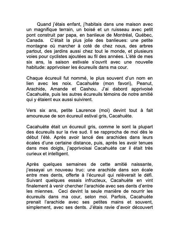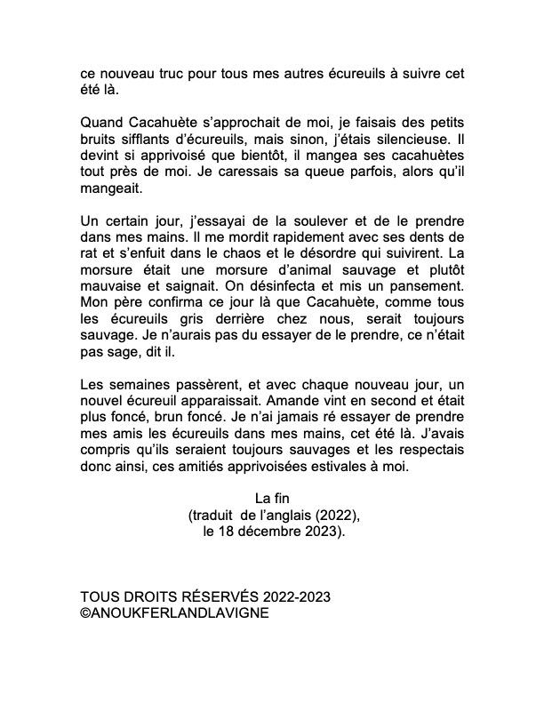 Cette histoire raconte comment à 6 ans j'ai apprivoisé de très près plusieurs .écureuils derrière chez moi. Elle contient une dédicace personnalisée à mes parents. Cadeau de Noël 2023 pour eux.