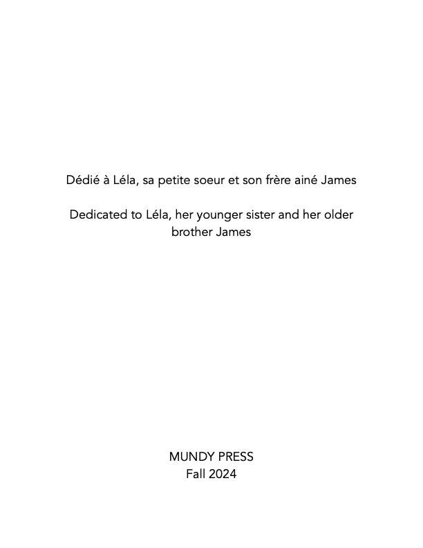 This book is 16 pages and contains three of my drawings. It also contains a few pictures. The story is 3 pages in each language. French and English.