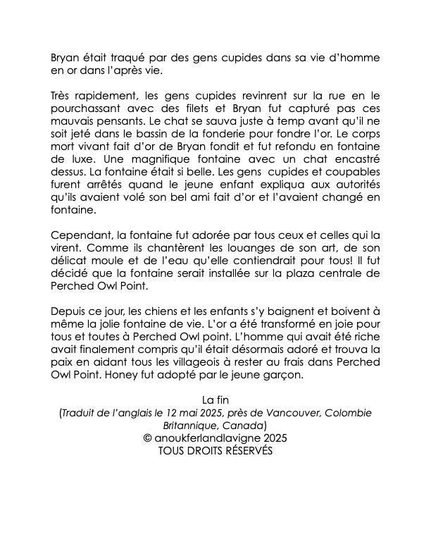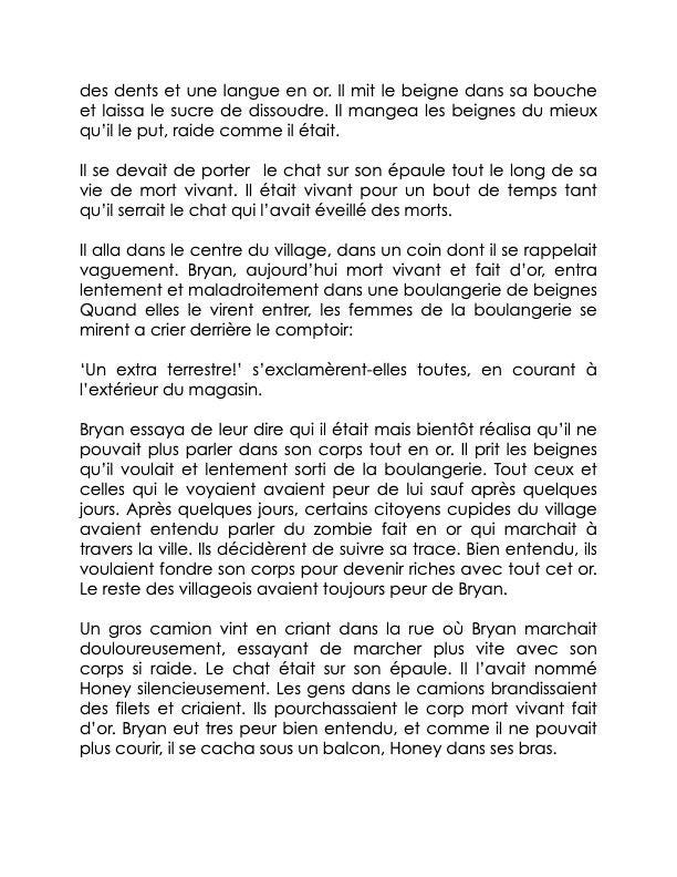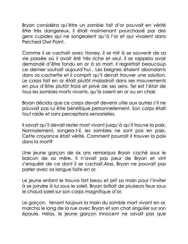 Une histoire de 4 pages qui raconte un mort dans l'au delà fait d'or (coulé dans l'or) qui se réveille de la mort à cause d'un chat. S'en suivent des aventures pour ce zombie fait d'or!