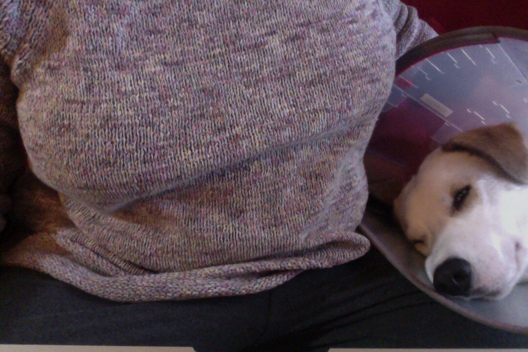 We just came back from a short morning walk. Billy ate well. HUbby told me to give billy his pain meds only if he whines. It is metacam, hard on the gut. I may do that. He slept all night with me. His head with cone is on my lap this morning.He got laser surgery and post op laser treatment for pain yesterday.