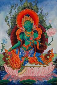 I found this thangkha in a shop online. I did not buy it: I am just sharing this wonderful image with you alL. GREEN TARA LOOKS A LITTLE LIKE AN ALIEN ON THIS THANGKHA!