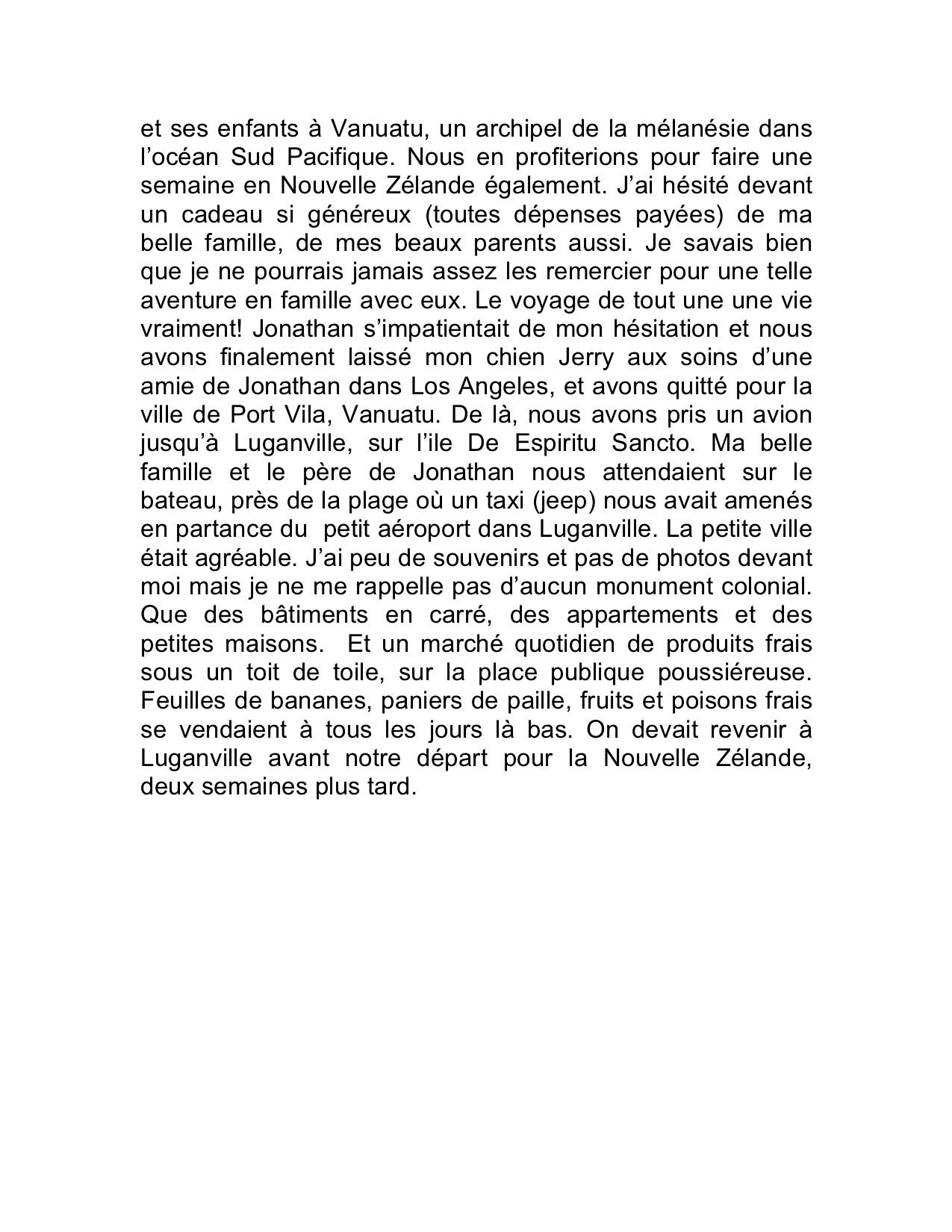 Fri, Oct 28, 2022 First three pages of French text translated on Vanuatu and L.A (a suivre) ALL RIGHTS RESEVED COPYRIGHT anoukferlandlavigne2022 Previous Post I should go for a walk Next Post I left the dogs alone at home to go do groceries