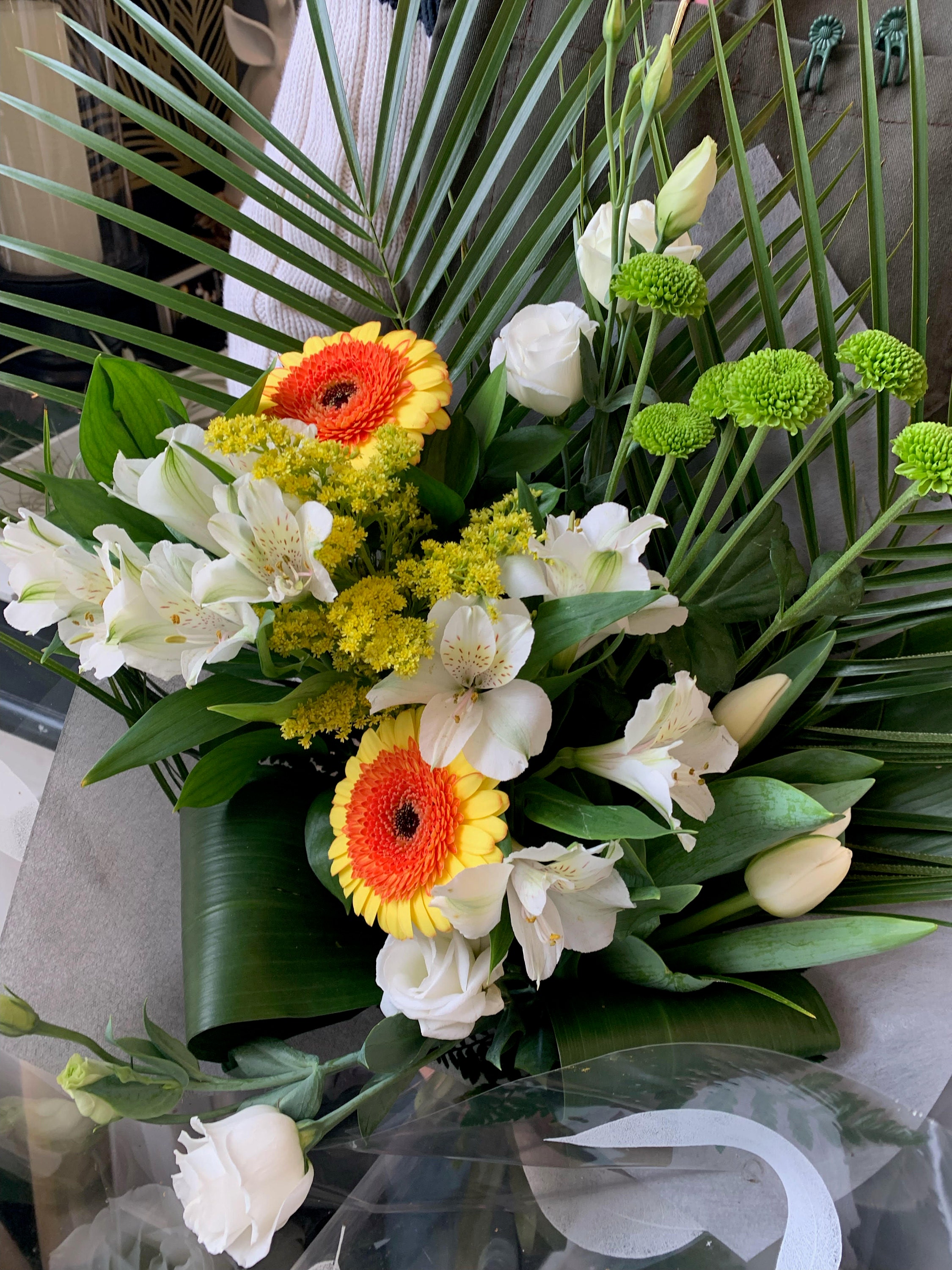 My good friend Danny's mom passed away last night at 90 years old. May God rest her soul. I met her way back when i had just started hanging out with Danny. She was lovely. It must be so hard to lose a parent. I have yet to experience it. No rush though. We sent a nice yellow, white and green bouquet to danny. You can see it in the picture in this entry. Very elegant and tasteful.
