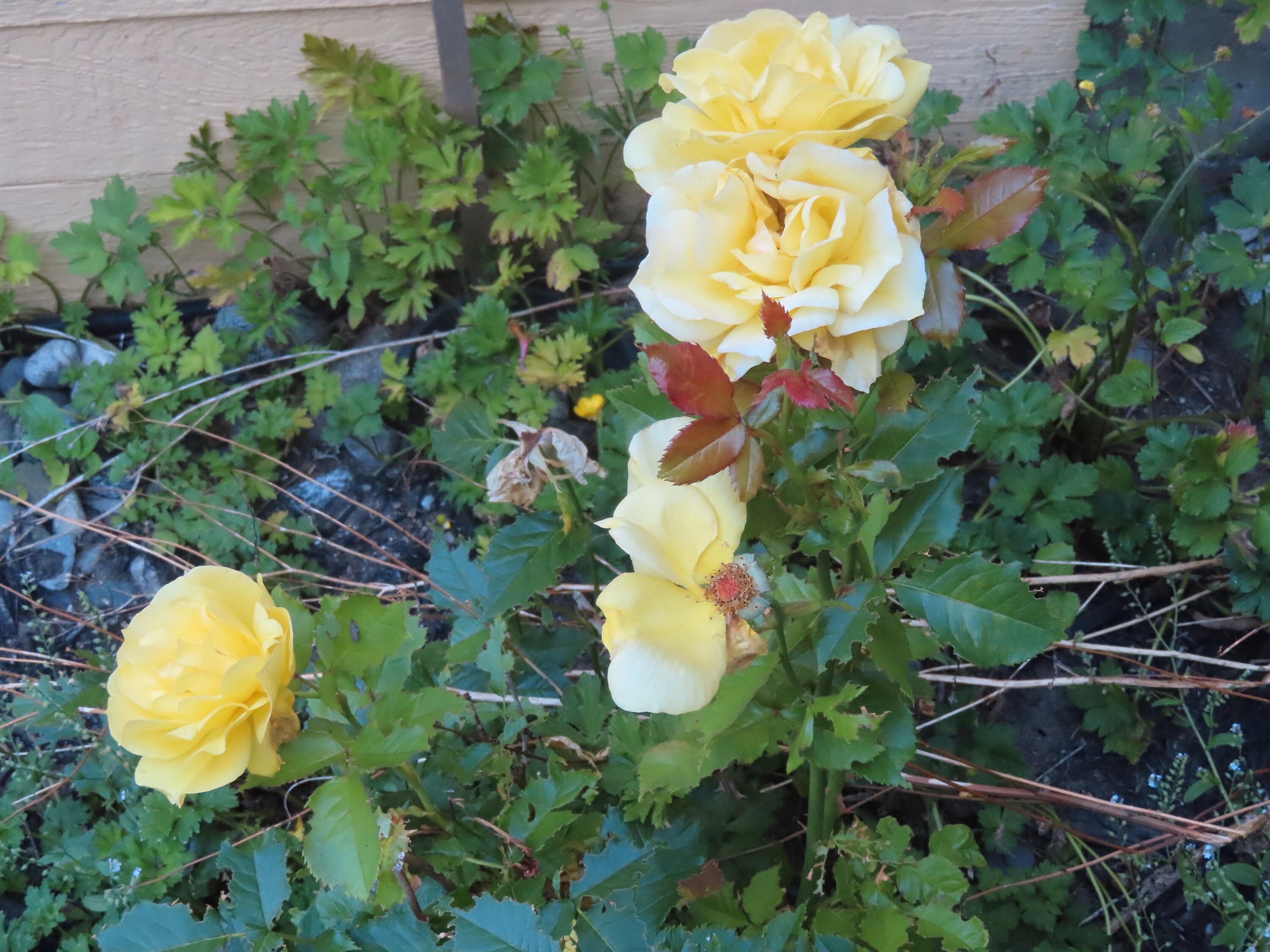 Ces photos ont été prises à l'instant. Le rosier a beaucoup fleuri cette année, planté il y a deux ans par moi. BJG prend bien soin des fougères près de la cloture depuis plusieurs années. Voilà donc notre cour en avant, très petite et peu fleurie mais agréable au cotton. :) Om mani peme hung Om mani peme hung Om mani peme hung