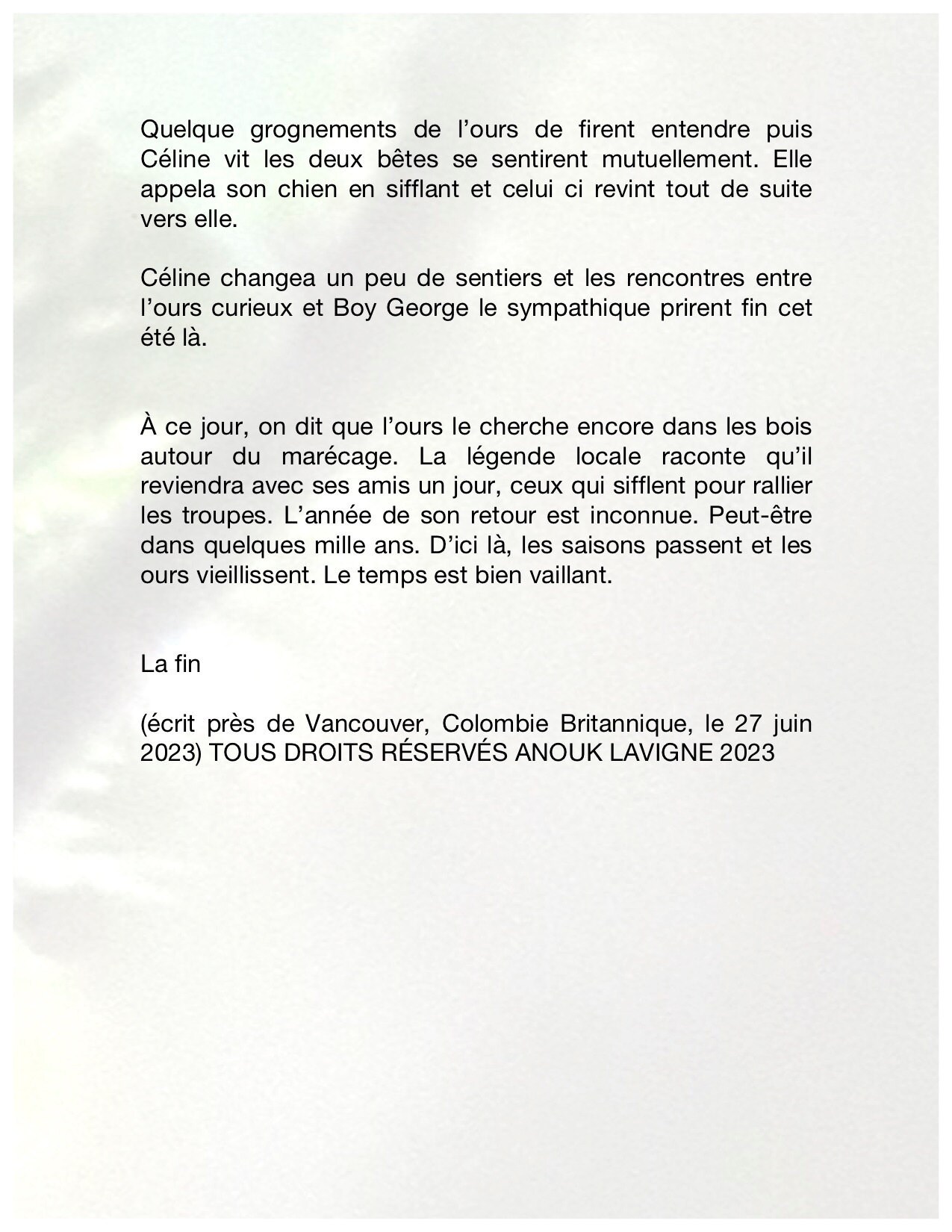Wed, Jun 28, 2023 courte nouvelle all rights reserved 2023 VOILA TOUT CE QUE J'AI REUSSI A ECRIRE OU PONDRE HIER SOIR. Previous Post Bisclavret, 2022 by Walton Ford (b. 1960) Next Post I am so sorry I can be so crazy online