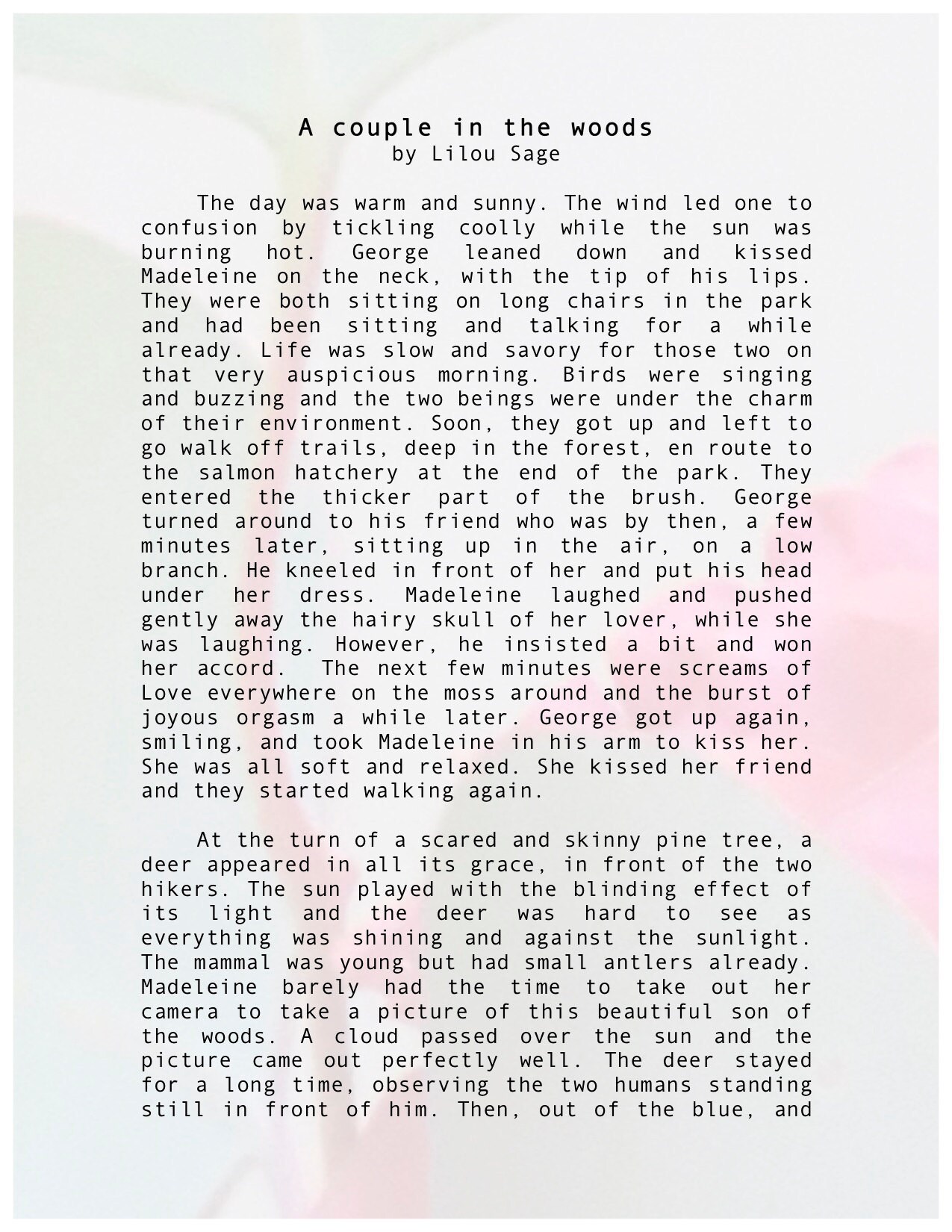 Hubby found there was too many lovemaking sessions so I got rid of one and instead, they just lay naked. The ending was suggested by him after a rather drab and flat ending in the original French version.
