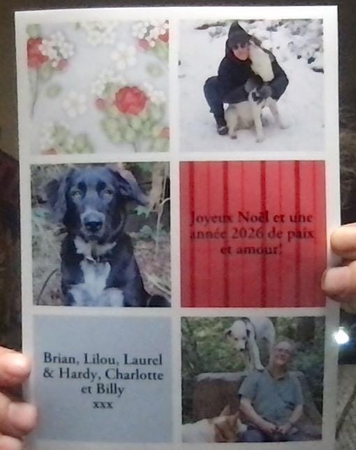 Photo: photo card in photo paper, not real card material, for 2$ each at london drugs. Our Noel cards unthematic.