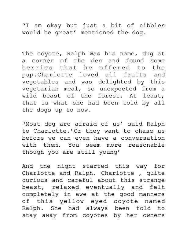 Charlotte could sadly wander back home or a search party could find her in the woods and bring her home. everything could happen within 24 hours. It is possible it would be just a dream she had in the garden when she wakes up. But she could see a wild coyote when she wakes up,int he neearby park with her owner and feel like she knows him....the end or to be continued.