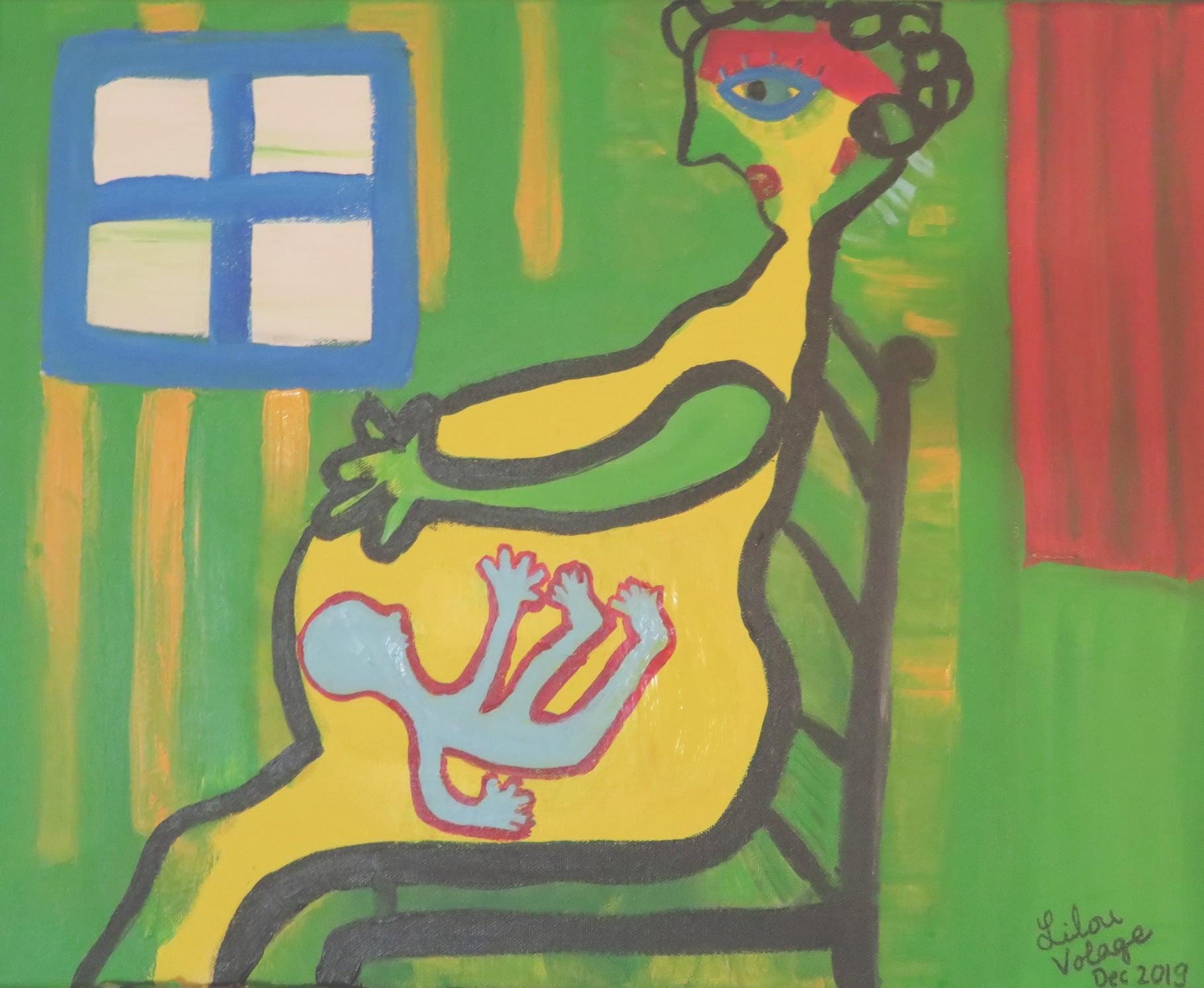Photo. My artwork, circa 2019, Mama by the window. Noel gift for my parents this year.