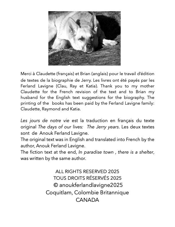 I am so 'up' tonight. It is the blast of excitement at the gift of my family,parents and sister, paying for the full 35 copies of Jerry's bio. And the books being ready very soon I suspect. Before Noel eve! Fabulous tribute from allof us, Brian and family of mine included, to this special guard dog and companion so cherished.