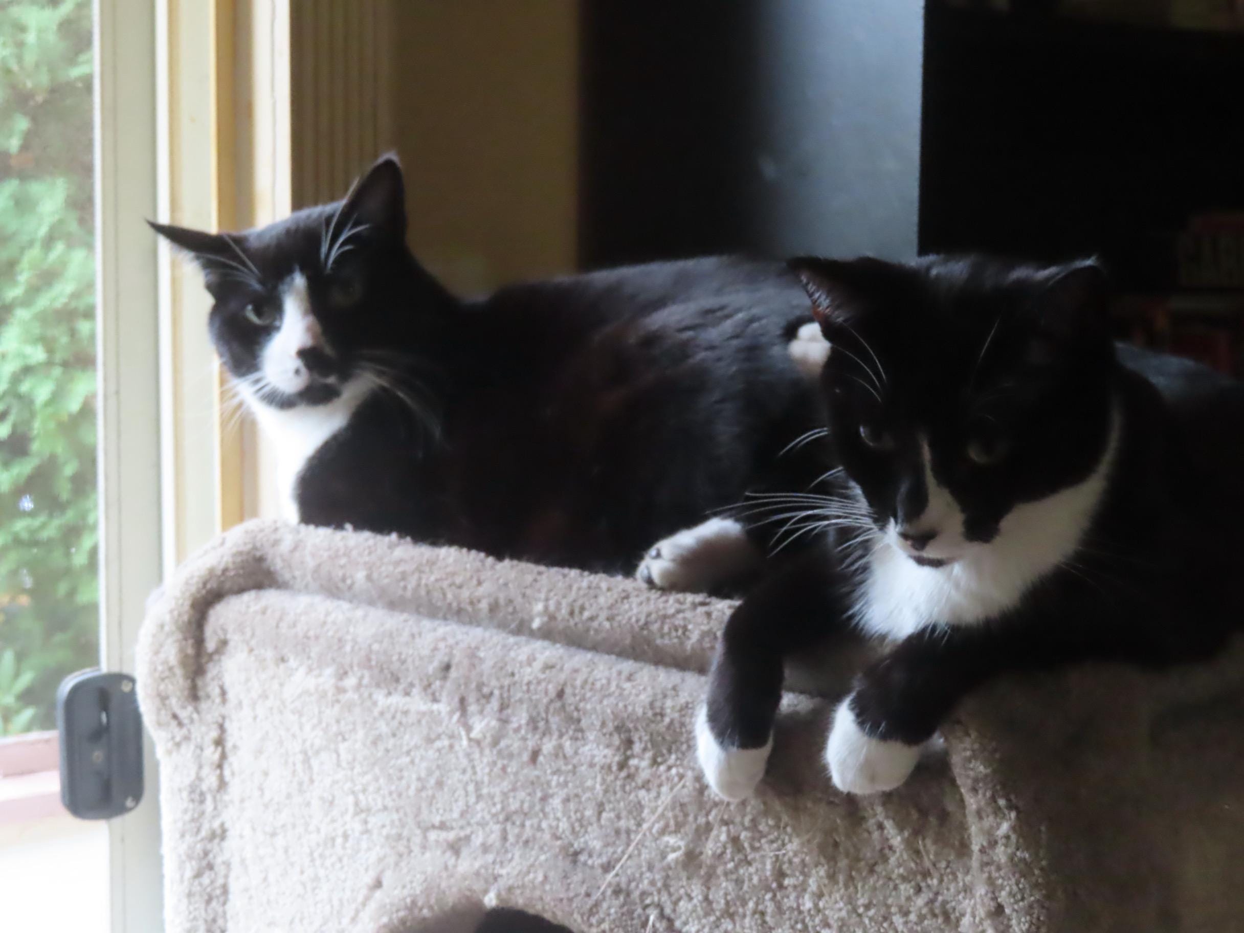 All animals are inside and now mellowing it after much vigorous play and chewingon the bed.