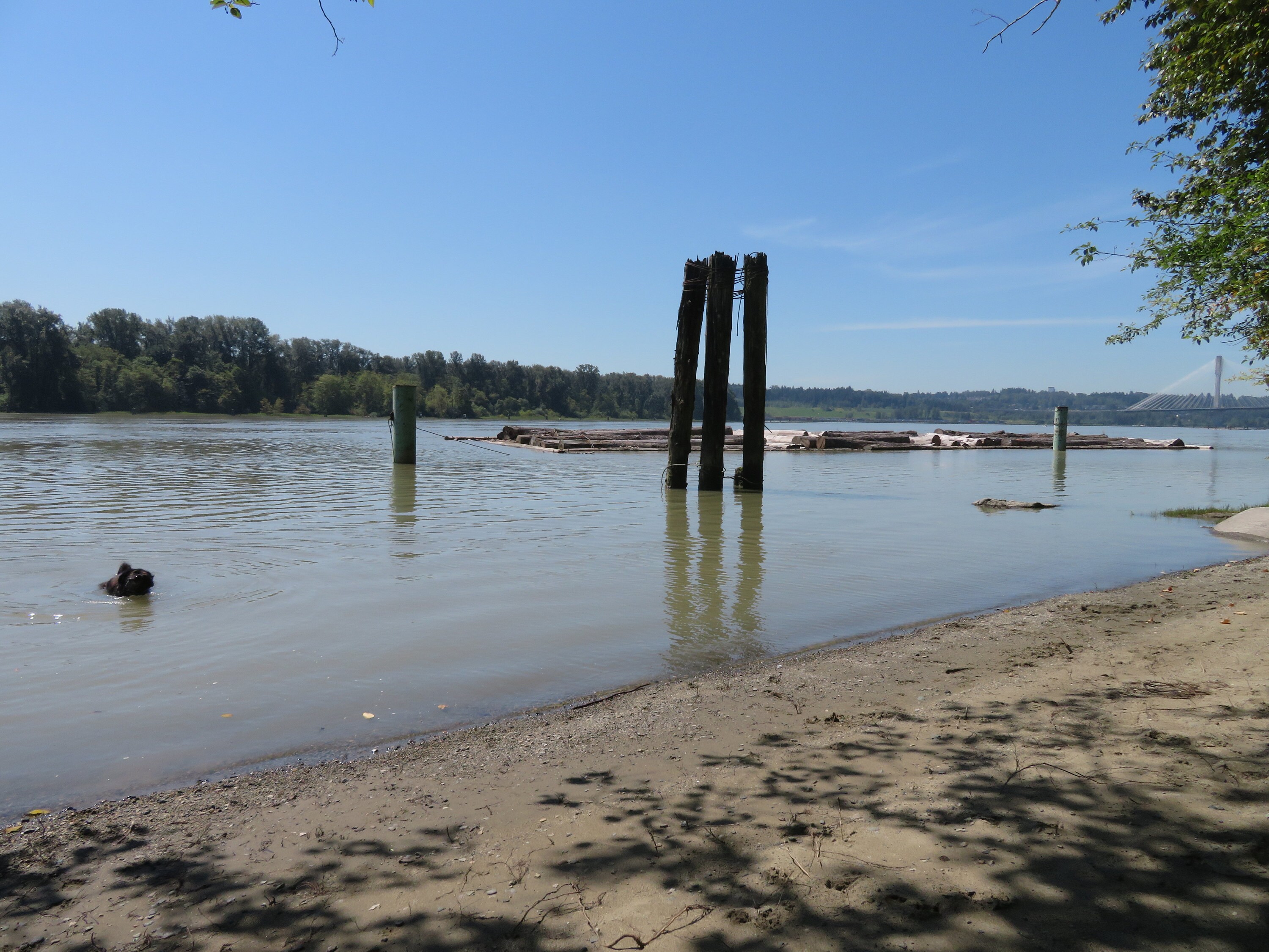 La rive du fleuve est belle au passage de fleuve. On y voit un pere et sa fillette qui y jouent. Apollo se perd en trombe en quelque part dans le portrait. Partout les billots, les pitounes, les pilotis. Et une ile sanctuaire que personne ne connait sauf les environnementalistes. C'est bien de cette ile qu'il s'agit, sur la photo ci bas.